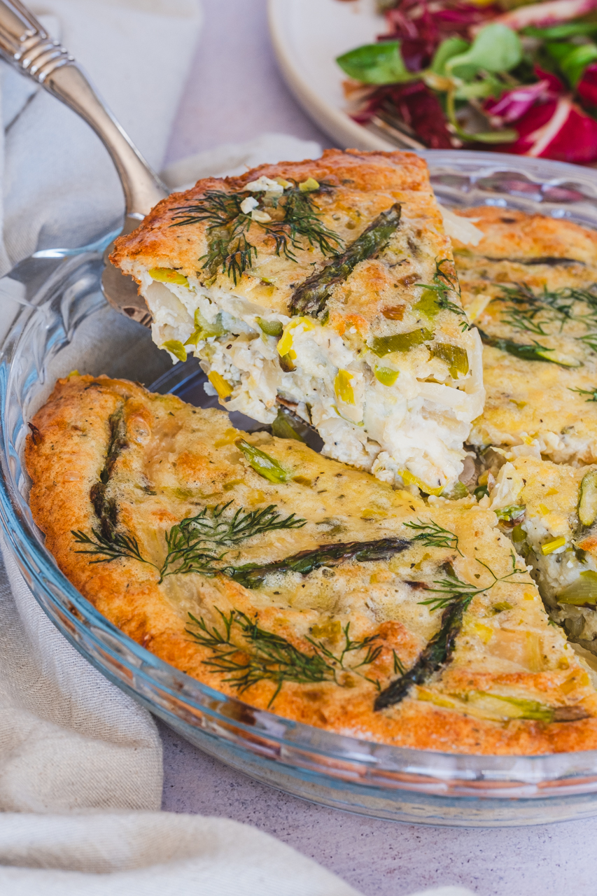This crustless vegetable quiche with leeks, fennel, and asparagus is simple, nourishing, and surprisingly satisfying. Made with eggs and cottage cheese, it’s naturally gluten-free and flourless (with just a touch of tapioca for structure), while delivering a good amount of protein with relatively few calories. It’s built around one of my favorite vegetable combinations, cooked until soft and aromatic, then baked into a light, creamy custard. Versatile and easy to prepare, this is the kind of dish that works just as well for breakfast, lunch, or a light dinner.