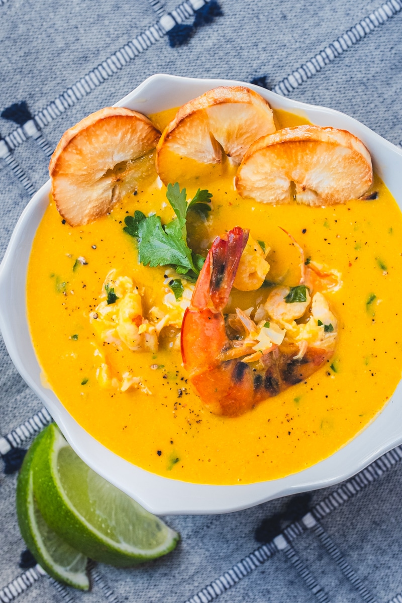Brazilian shrimp stew (moqueca) is a close relative in spirit, traditionally made with coconut milk and red palm oil. That combination happens to work beautifully for a lectin-free version, which is how this dish found its final shape. I used shrimp simply because that’s what I had on hand, but this recipe can easily serve as a framework for other seafood chowders or bisques.