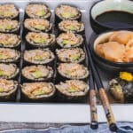 - Rolling Sushi: This is the only part that might feel a little intimidating at first, but trust me — it’s easier than it looks. I highly recommend getting a sushi rolling mat and watching a quick video tutorial before you start, just to get the basics down. Some rolling mats also come with tutorials. Once you’ve tried it once, it becomes second nature.