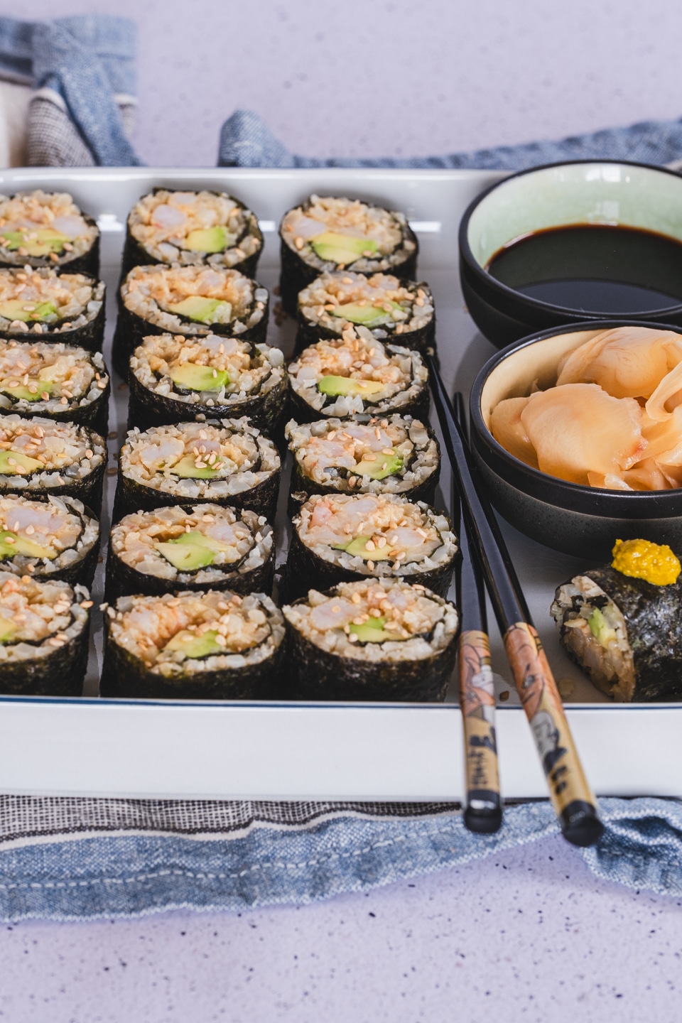 You can also swap shrimp for crab meat (the real one!), or use a combination of both for a more classic “California roll” feel. When I lived in Dallas, crab was one of my favorite proteins to buy, but here in Denmark it’s a little harder to find — so shrimp it is!