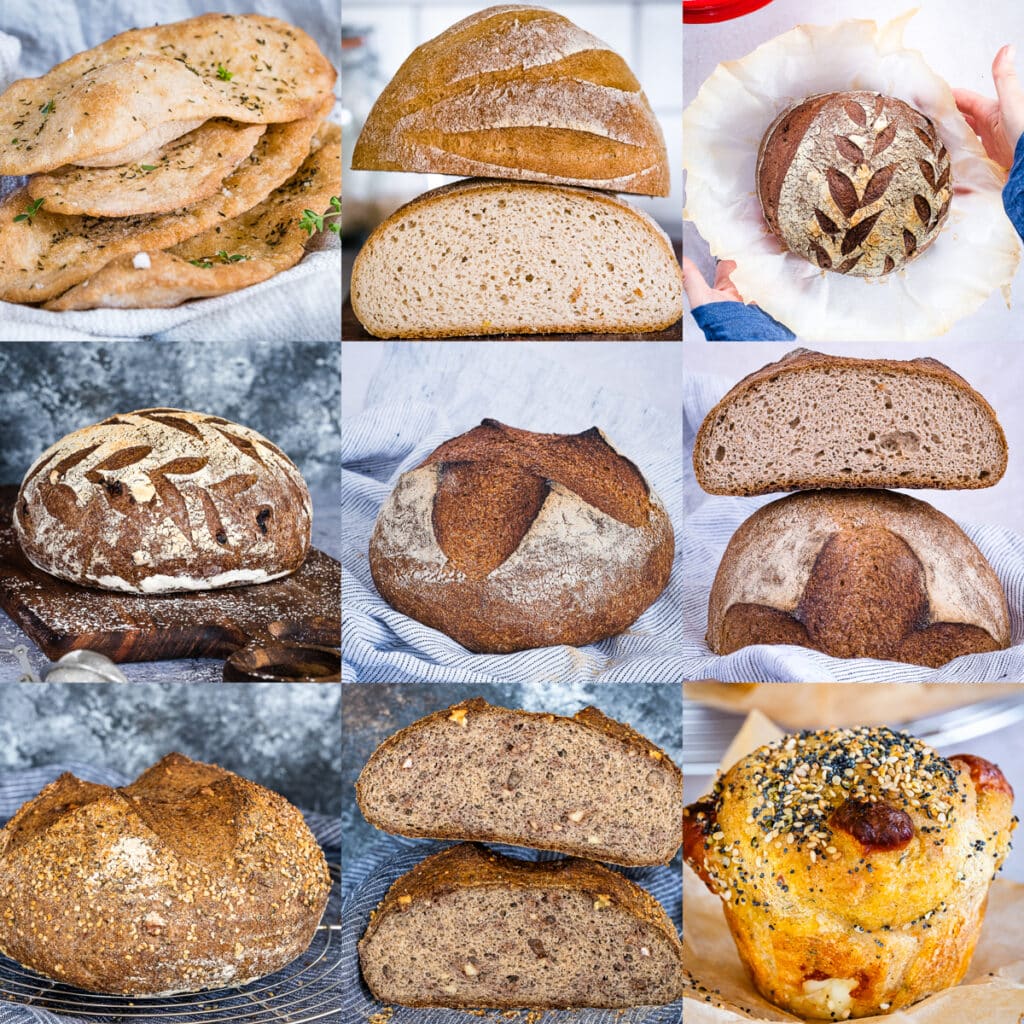 In addition to the core method — which teaches you how to make a range of artisan loaves using different flour combinations — the book includes the following recipes: