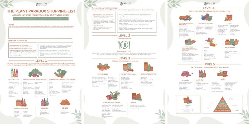 That’s where our plant paradox printable shopping list (PDF) comes in handy. Not only will you find a list of the most common lectin-free foods, but they will be presented in a way that will help you easily understand what to prioritize during shopping, portion sizes, and how often you can eat the foods on the list.